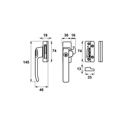 Veiligheids raamsluiting met nok en opbouw sluitkom SKG1 zwart LS 3329 product photo